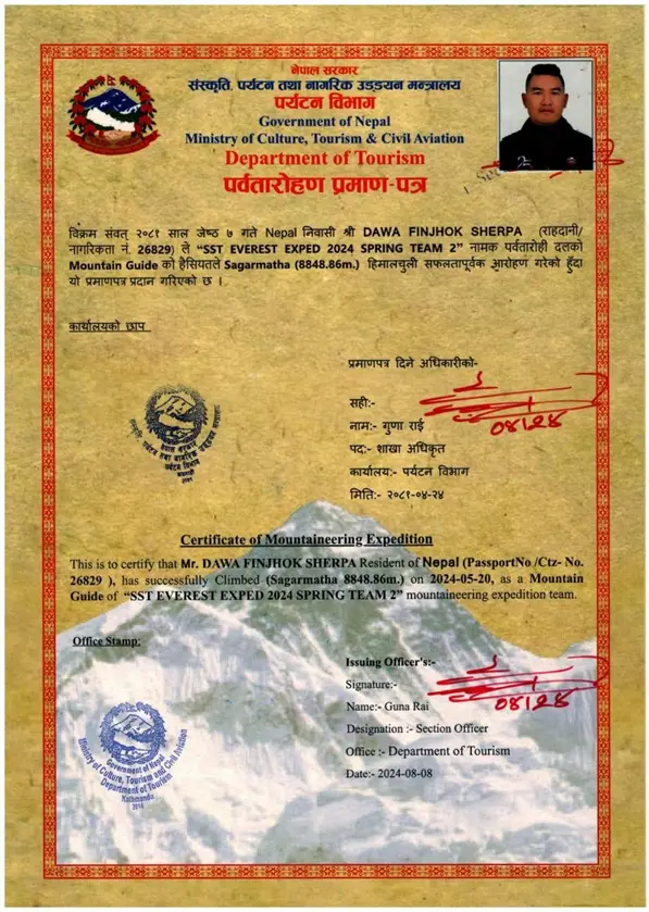Dawa Finjhok Sherpa is a professional mountaineer and mountain guide from Nepal. He was born in Bigu Rural Municipality–1,
